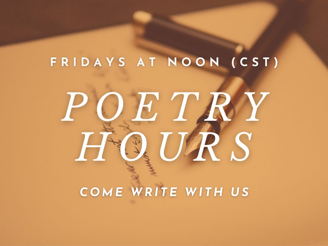 Every Friday at noon, we open our digital doors to invite poets to come write poetry together on Zoom for one hour. You are invited!